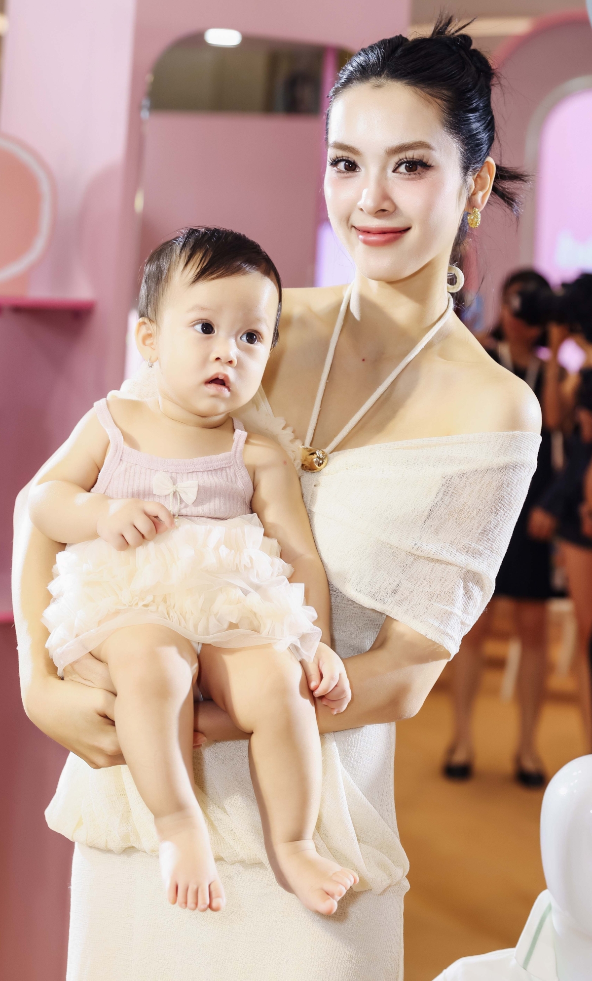 Diễn viên Quỳnh Lương đưa con gái hơn sáu tháng tuổi dự sự kiện.