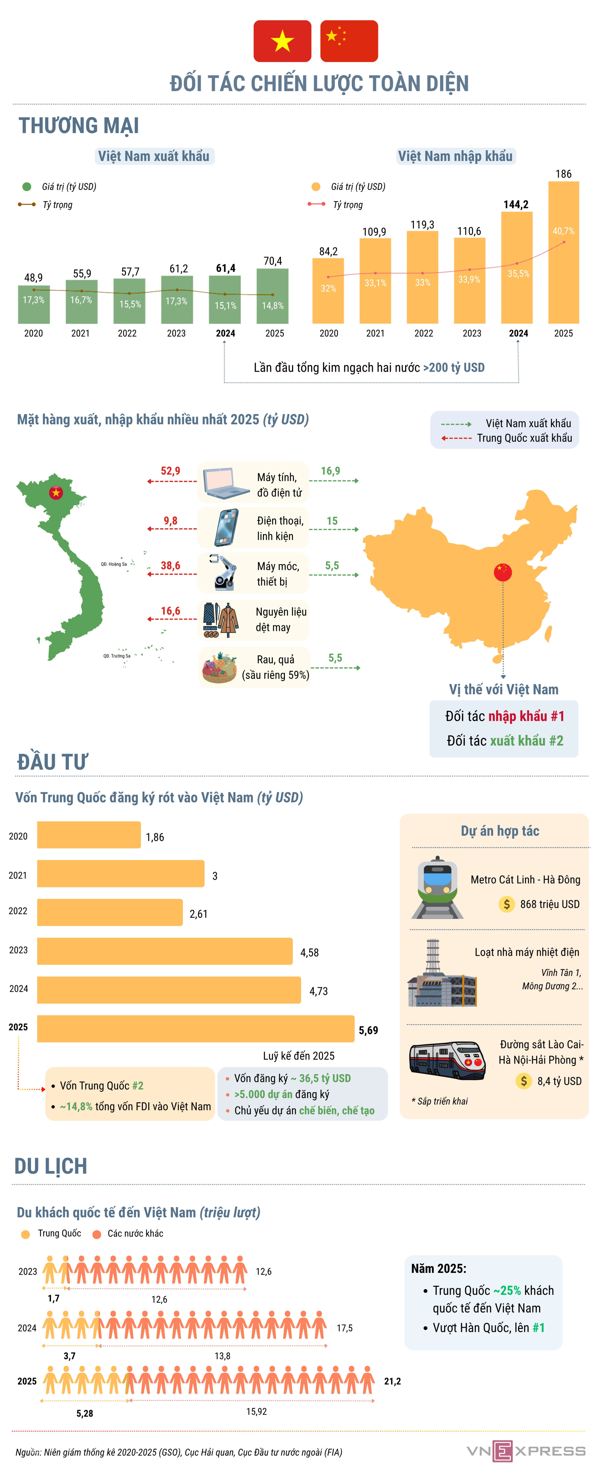 Kim ngạch thương mại Việt – Trung đạt kỷ lục gần 257 tỷ USD vào 2025, trong đó Việt Nam duy trì vị thế là đối tác thương mại lớn nhất của Trung Quốc trong ASEAN.