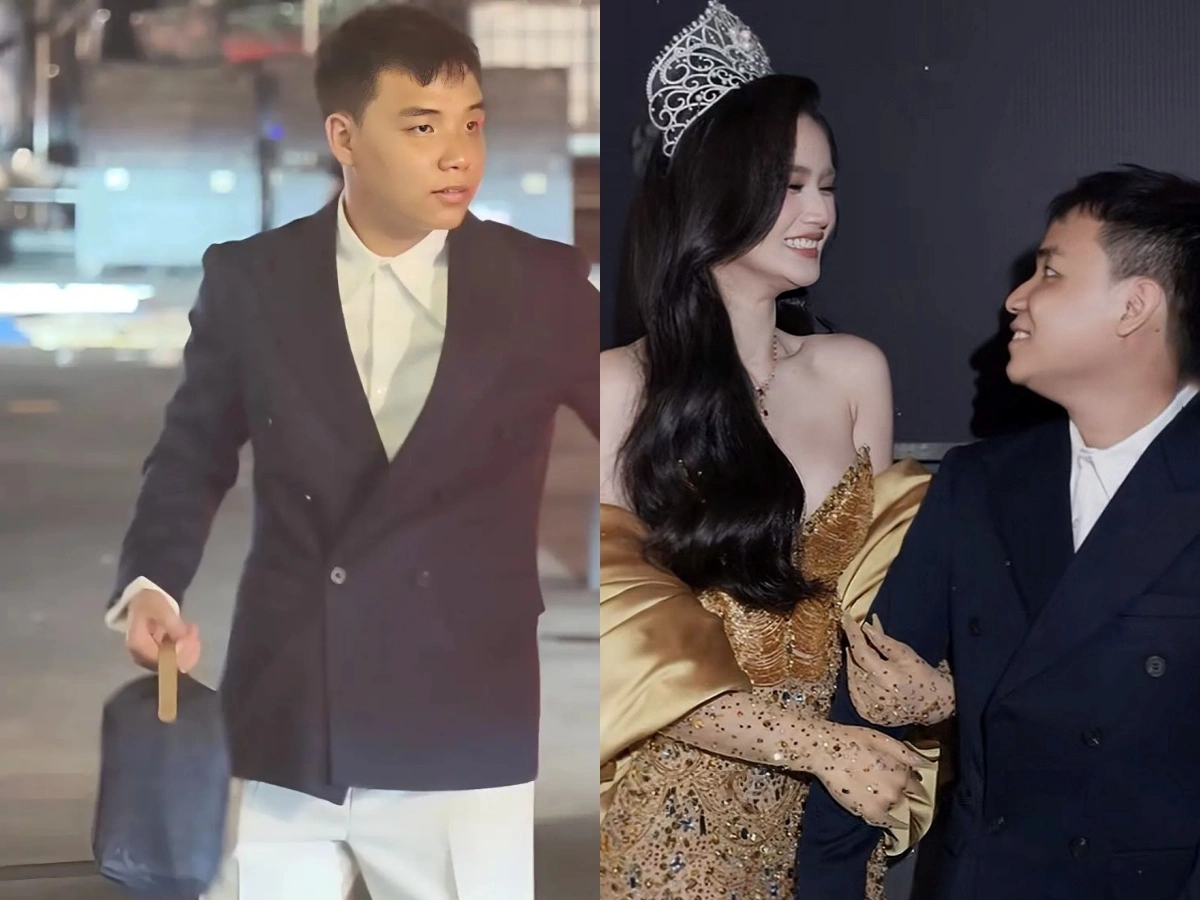 Nguyễn Anh Kiệt gây chú ý khi tới cổ vũbạn gái tại chung kết Miss World Vietnam 2025, tối 29/3 ở TP HCM. Anh diện suit còn Ý Nhi mặc đầm dạ hội xuyên thấu của nhà thiết kế Thượng Gia Kỳ.