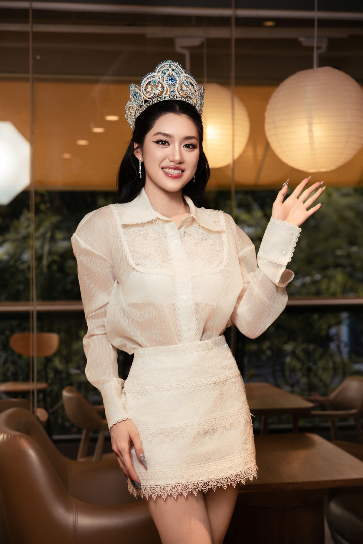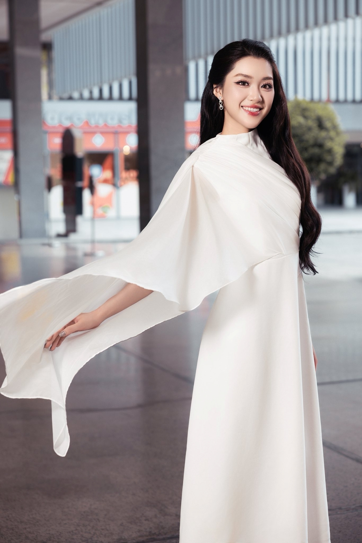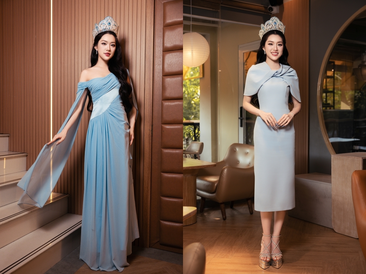 Miss World Vietnam 2025 Phương Oanh chọn váy áo màu sắc nhã nhặn, tôn hình thể khi tham gia các hoạt động sau đăng quang.