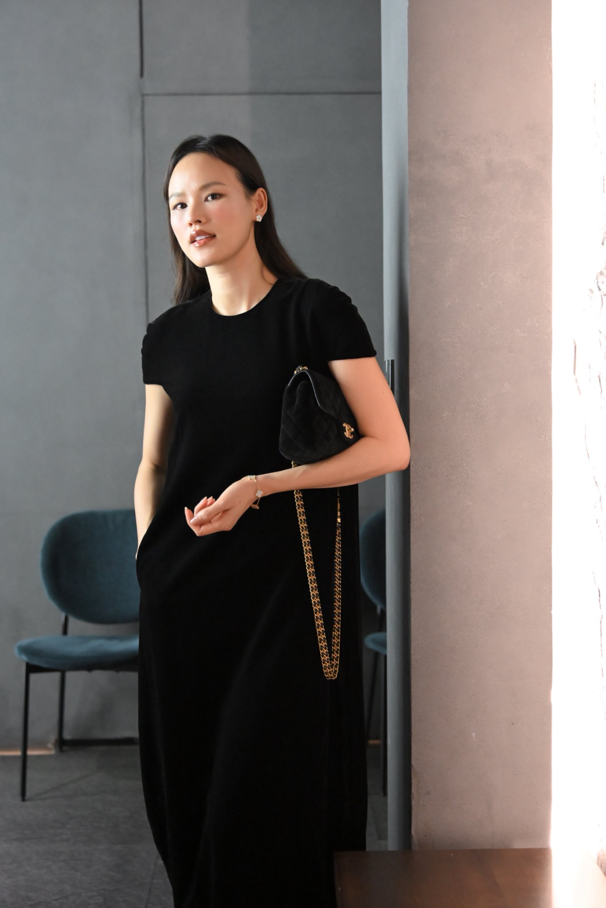 Hoa hậu Lương Thùy Linh chọn mẫu dây chuyền dài bằng vàng 18K, gồm 20 mặt đá mã não xanh dương. Thiết kế mang ý nghĩa về sự bình an, cân bằng năng lượng và phát triển bền vững, giá 20.800 Euro (hơn 633 triệu đồng). Trong phong thủy, mã não xanh dương được cho là mang sự bình an, giúp giảm căng thẳng, chữa lành cảm xúc và thu hút may mắn, tăng cường sáng tạo.